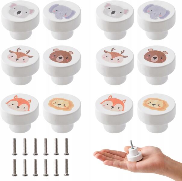 Díszítő Fa Gombok Gyerekeknek Állatkák 12 Db Róka Elefánt Oroszlán (ESU-12)ALLEGRO