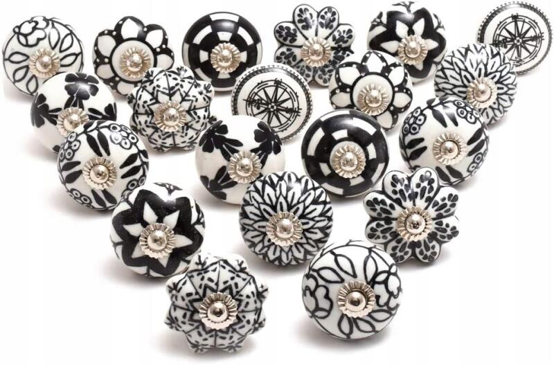 Kerámia Gomb FióKOKHOZ Bútorokhoz Fehér-fekete 20 Db Díszítő Szekrények FióKOK (naq-bw)ALLEGRO