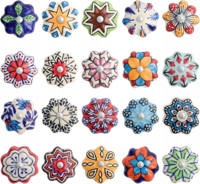 Színes Kerámia Gombok Mintákkal 20 Db Szekrényekhez Fiókokhoz Dekorációs (GRES-20)ALLEGRO